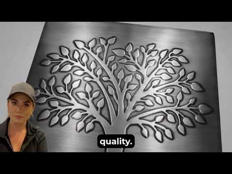 Rankų darbo nerūdijančio plieno plytelė su Gyvenimo medžio motyvu – elegantiškas simbolinis akcentas šiuolaikiniam interjerui.