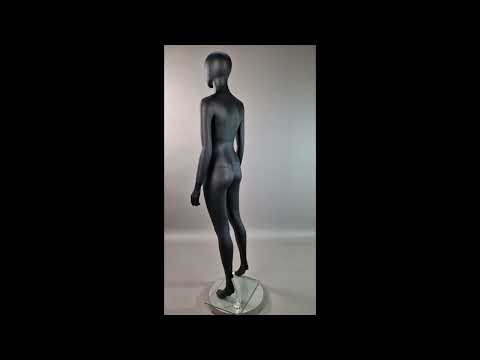 Pilno ūgio moteriškas manekenas, skirtas rūbų demonstravimui ir pardavimui. Juoda matinė spalva. Atitinka "XS" dydžio rūbams. Padas-atrama įeina į komplektą.