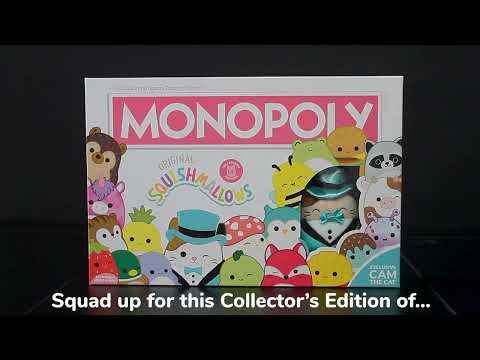 Squad up with the plushiest version of the classic family game you'll ever play! MONOPOLY: Original Squishmallows Collector's Edition lets players buy, sell, and trade their favorites from the Classic Squad to the Fantasy Squad, including Fifi the Fox and Benny the Bigfoot! This special edition comes with an exclusive 4 Cam the Cat plush to start off your journey, plus custom tokens that represent Squishmallows fun. Set up valuable Squads and Collections to be the last one with Squishcash to win!